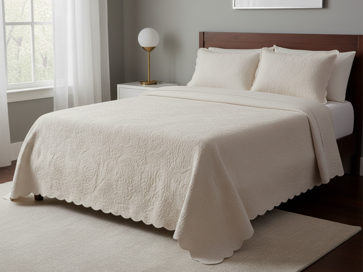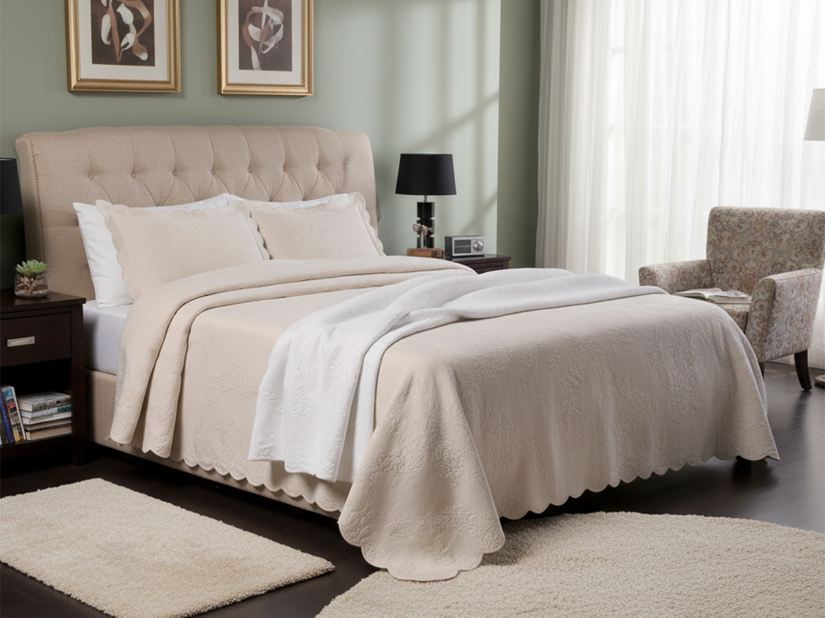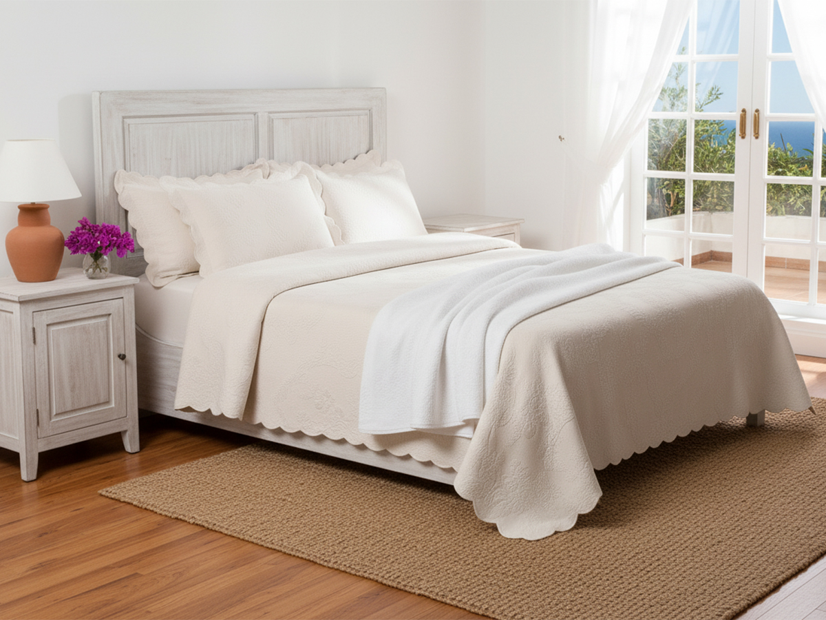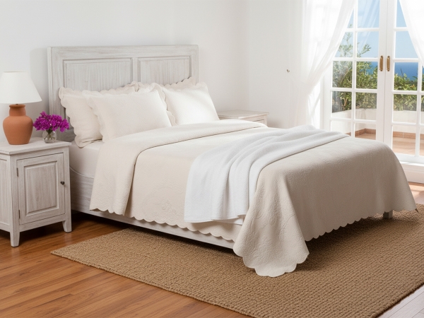 Crafted from pre-shrunk 400gms Matelasse cotton, it offers exceptional durability and softness. Made from 100% cotton imported from the Nile Delta, it provides superior comfort and quality. The Luna Bedspread features a beautiful scalloped finish, enhancing its elegant design. Available in classic white or cream, it seamlessly complements your bedroom decor.